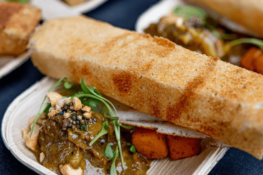 The nationwide feast gathers the finest chefs and family farms for an open-fire, outdoor cook-off. The ultimate goal? To earn the title of ‘Heritage Hero‘ by winning over the crowd with an unforgettable dish. Take a closer look at the winning bite from Heritage Fire Nashville – the curried lamb dosa – as well as other notable dishes, such as the smoked duck pastrami, pork belly lettuce wrap, and bulgogi tri-tip paratha.