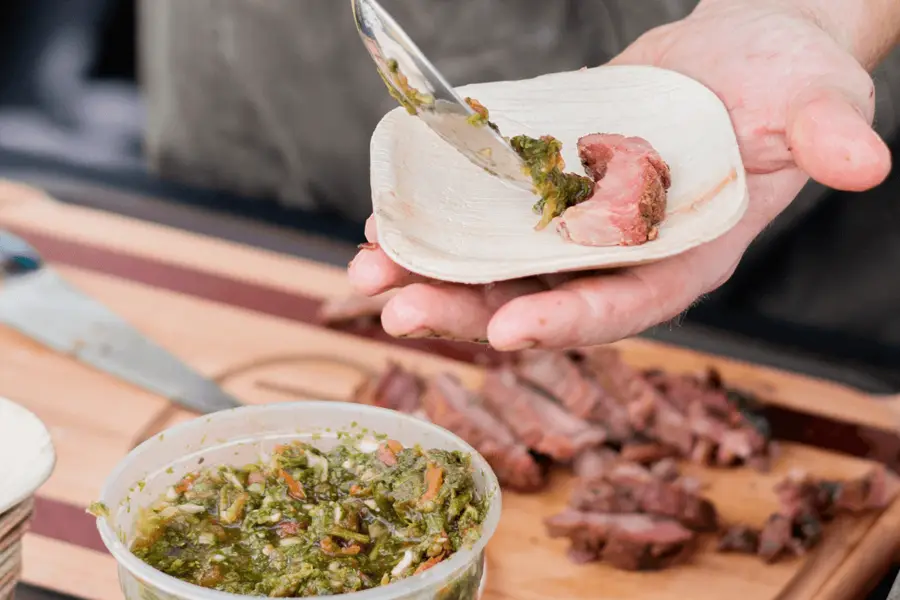 Whole lamb from 920 Cattle & Co, marinated and roasted, served with chilean pebre.
